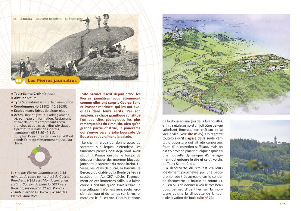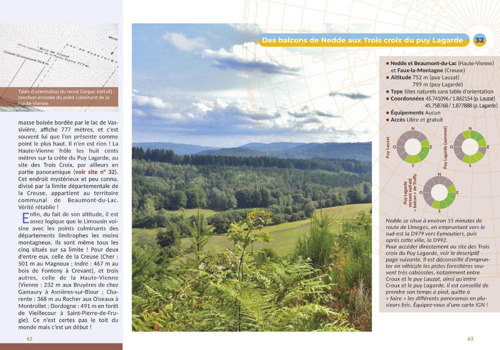 Aux côtés du mont Gargan ou de la vallée de la Creuse, l’auteur a déniché des points de vue remarquables hors des sentiers battus : le chêne de Clovis, les 189 marches du clocher de Felletin, les huttes ornithologiques, et les magnifiques panoramas à 360°