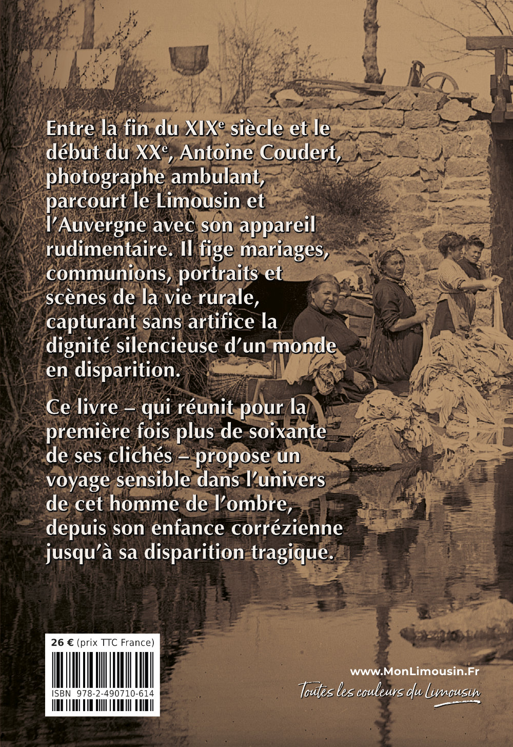 Entre la fin du XIXe et le début du XXe siècle, Antoine Coudert parcourt le Limousin et l’Auvergne comme photographe ambulant. À travers mariages, communions, portraits et scènes rurales, il saisit avec sobriété la dignité d’un monde en disparition. Réunissant pour la première fois plus de soixante clichés, cet ouvrage retrace le parcours de cet homme discret, de son enfance corrézienne à sa disparition tragique en 1910 : il met fin à ses jours en absorbant du cyanure de potassium qu’il utilisait pour développer ses photographies. Longtemps oubliée, son œuvre est redécouverte en 1977 avec la mise au jour de 99 plaques de verre, aujourd’hui conservées aux Archives départementales de la Corrèze.