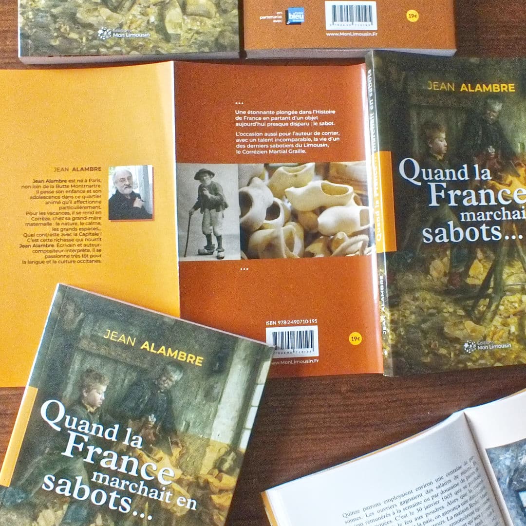 Sabots et sabotiers ont marqué les paysages et les mémoires. Avec le temps, la nostalgie des uns ou la curiosité des autres se sont développées pour ces symboles d’une époque qui se serait éteinte avec eux. C’est ce double appétit que vient nourrir le nouveau livre de Jean Alambre qui, gourmand de tours et détours, nous fait redécouvrir ces temps où la France marchait en sabots. Son travail prolonge parfaitement l’exposition de la collection issue de l’atelier du dernier sabotier de Corrèze, Martial Graille, accueillie par la Maison de l’Arbre et de la Nature de Chamberet. (Extrait de la préface)